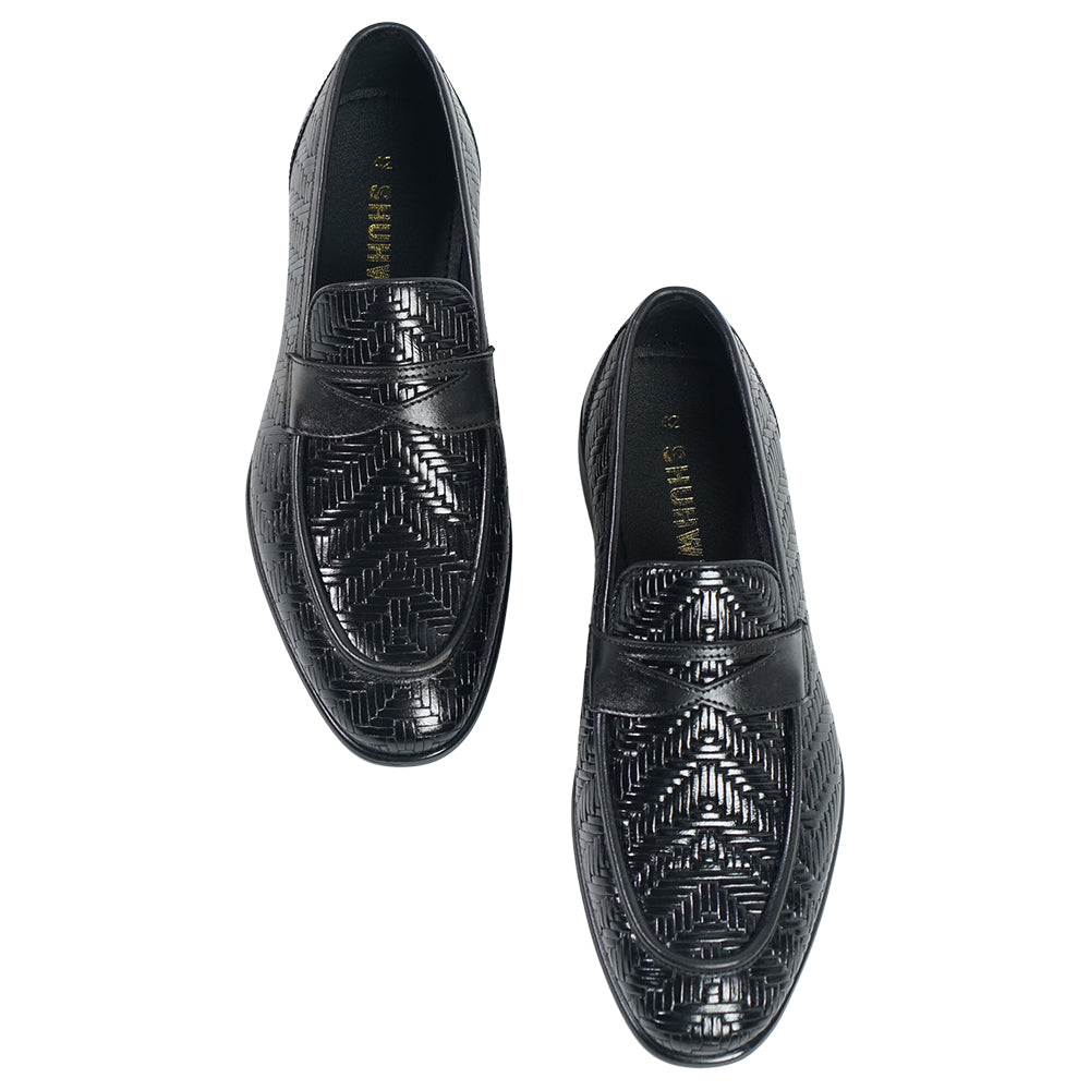 woven leather loafers in rich brown. Featuring an intricate textured design and a sleek silhouette, they’re perfect for making a bold yet sophisticated statement.